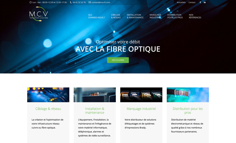 DétailsMieux vous informer sur nos activités, mieux vous guider dans vos recherches… M.C.V a mis à jour son site web pour mieux vous servir ! Ce site vous offre une navigation plus fluide et une vision plus complète de nos activités : Pré-câblage de votre réseaux cuivre et fibre optique L’installation et la maintenance informatique,…